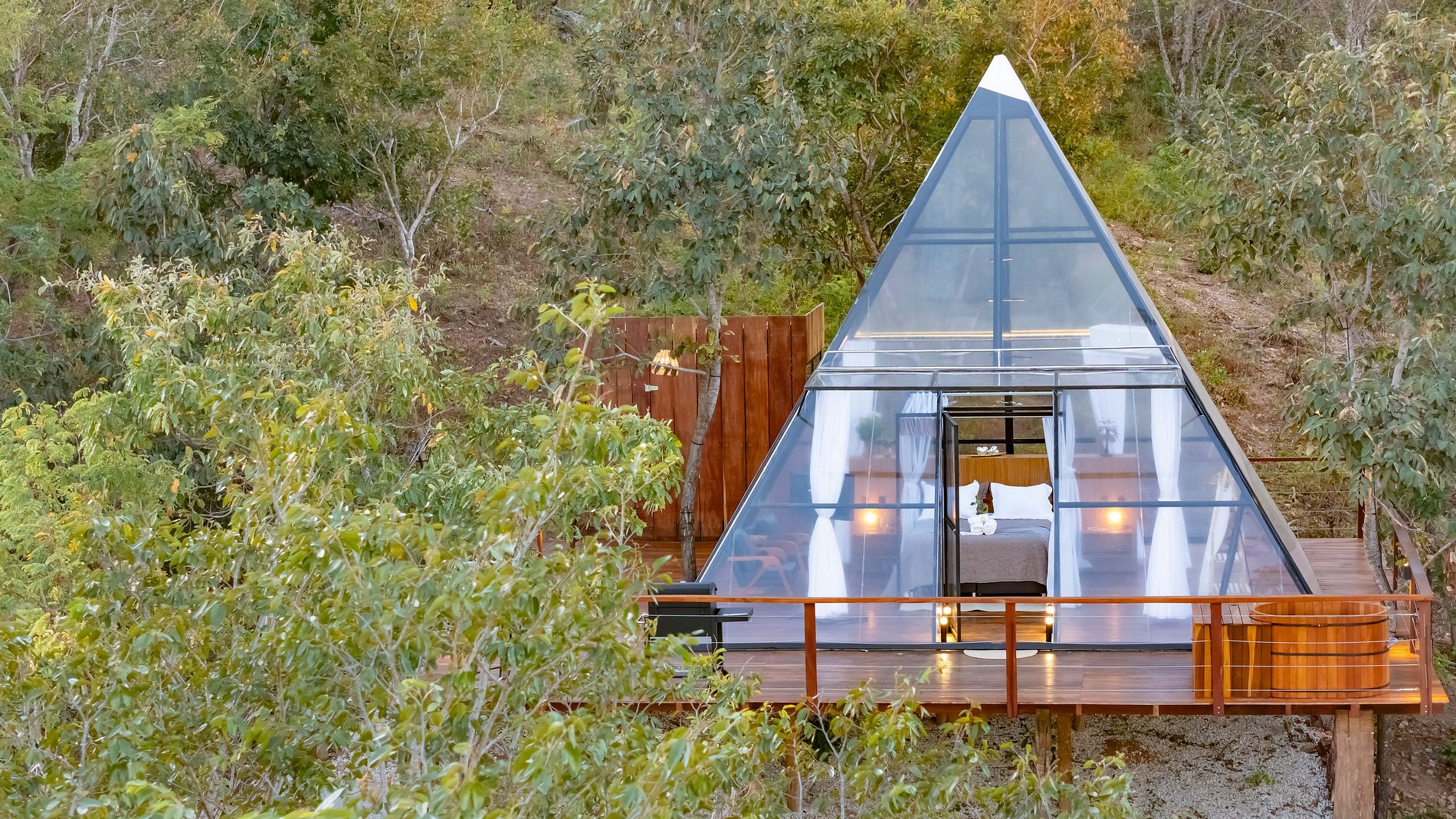 Imagine acordar rodeado pela beleza das montanhas, assistir a um pôr do sol deslumbrante diretamente da sua cabana, e, à noite, se perder no espetáculo do céu estrelado — tudo isso dentro de um espaço com design transparente, sofisticado e pensado nos mínimos detalhes para proporcionar conforto, bem-estar e conexão.