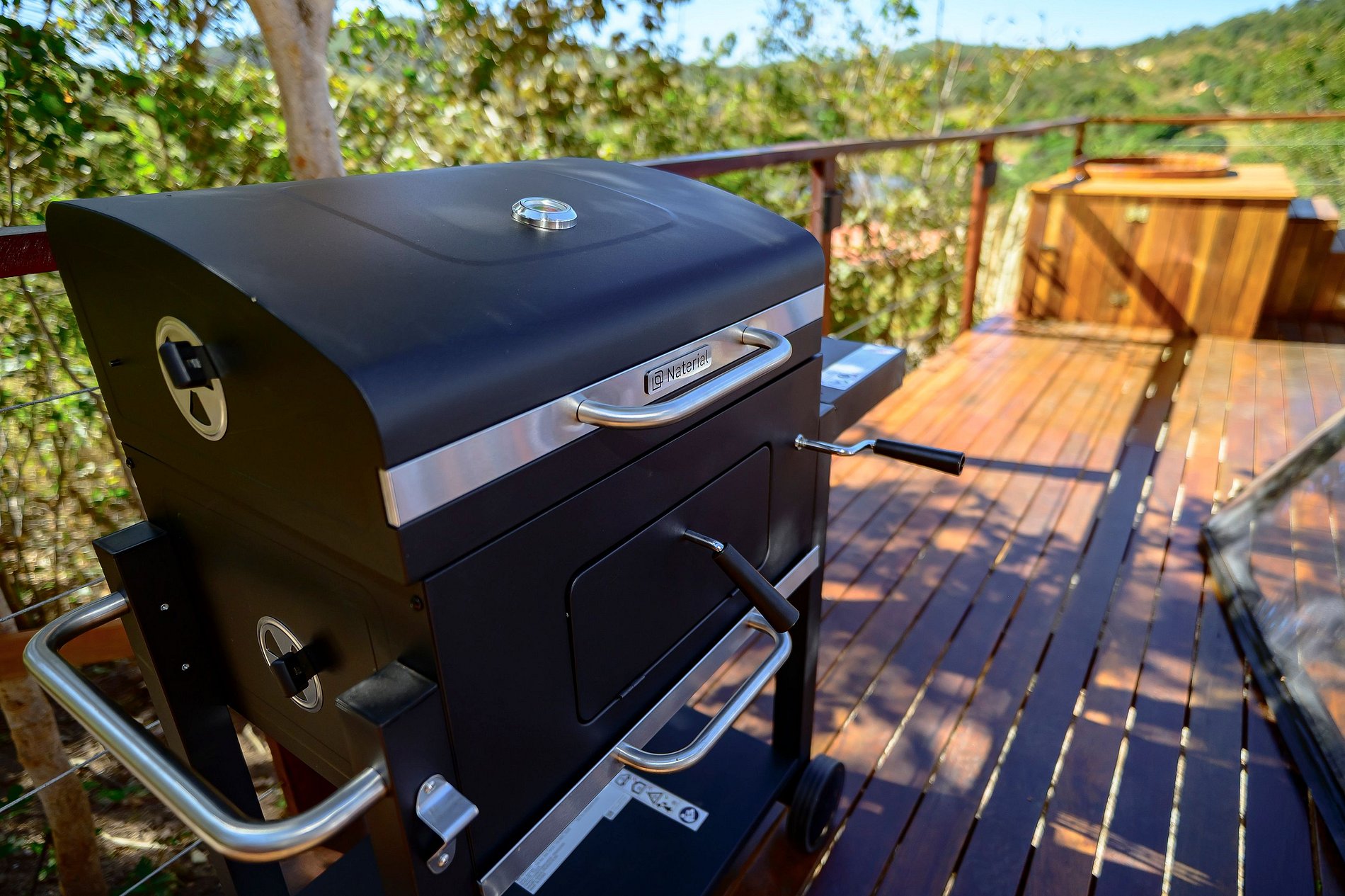 A cabana é equipada com bons utensílios, permitindo que você prepare suas refeições básicas. A área de churrasco conta com uma churrasqueira americana, ideal para momentos de confraternização, e uma fogueira com vista para a serra, perfeita para aquecer as noites e criar memórias especiais sob o céu estrelado.