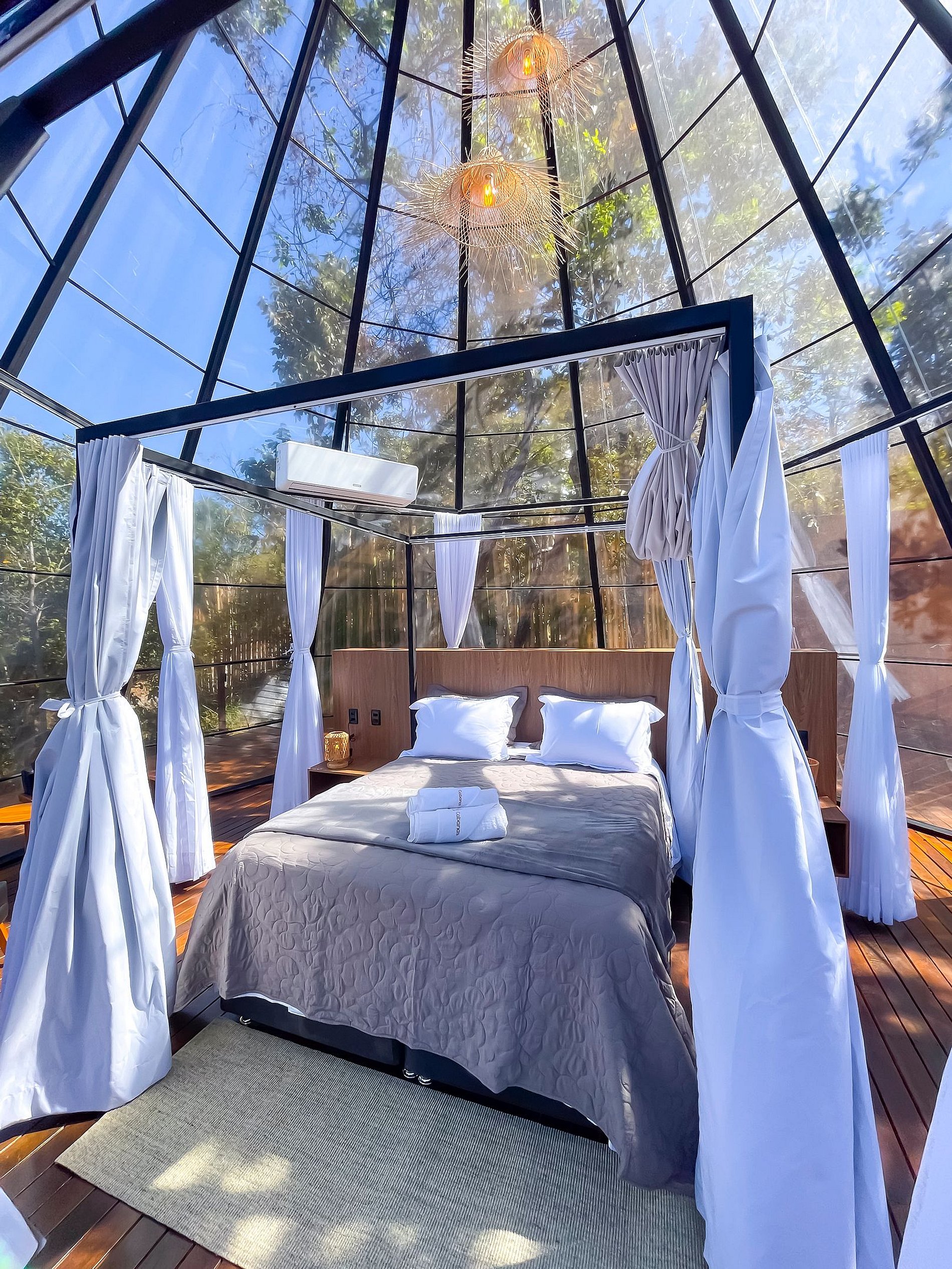 Imagine acordar rodeado pela beleza das montanhas, assistir a um pôr do sol deslumbrante diretamente da sua cabana, e, à noite, se perder no espetáculo do céu estrelado — tudo isso dentro de um espaço com design transparente, sofisticado e pensado nos mínimos detalhes para proporcionar conforto, bem-estar e conexão.